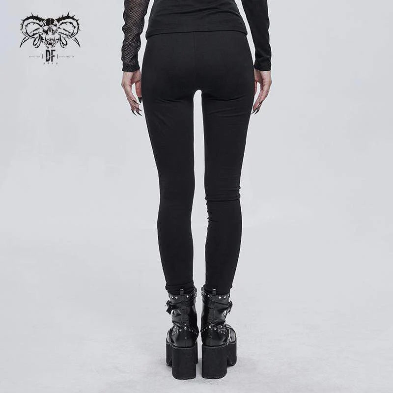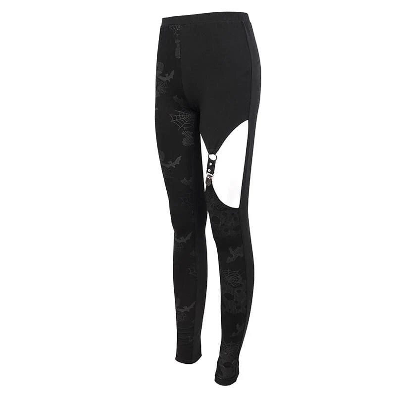 Women's Gothic Cobweb Printed Cutout Pants