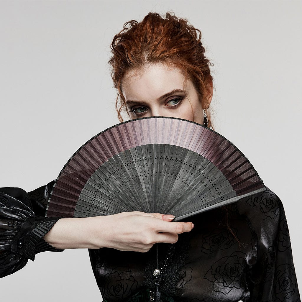 This women's Gothic fan boasts a stunning color gradient and intricate carving, perfect for adding a touch of elegance to any outfit. The lightweight design and sturdy construction make it ideal for everyday use or special occasions. Elevate your style with this unique accessory.
