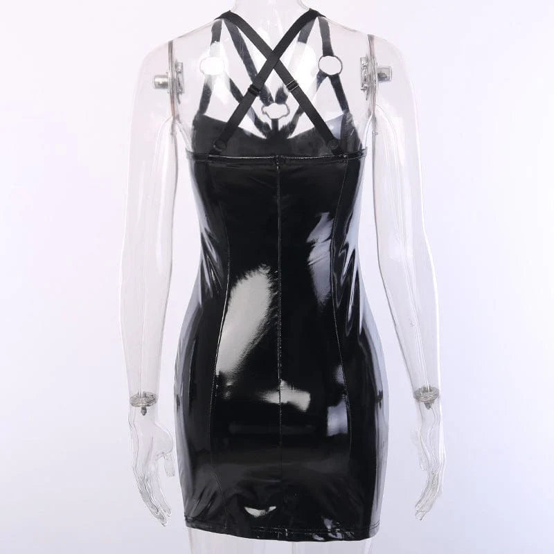 Women's Punk Cross Patent Leather Slip Dress
